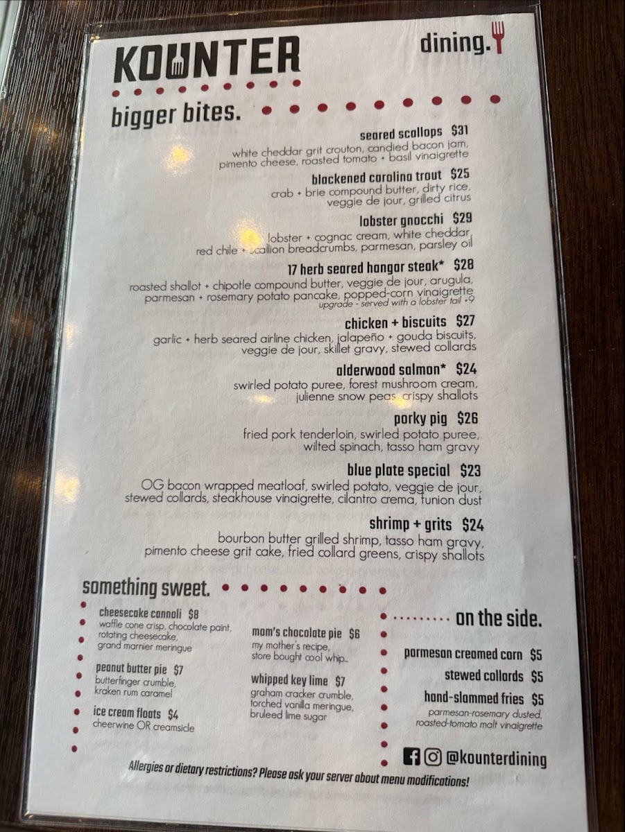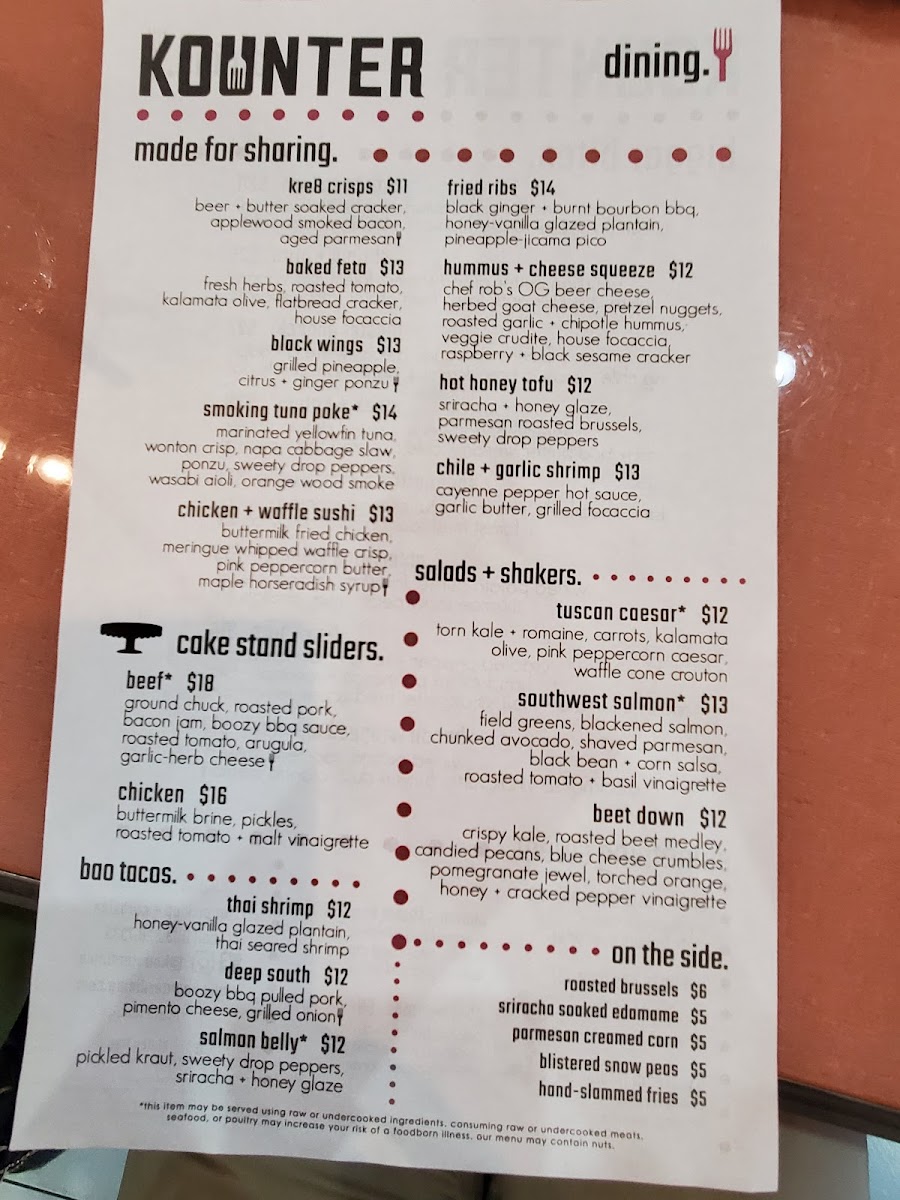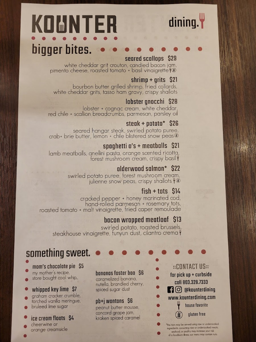 Welcome to Kounter, a charming gem nestled in Rock Hill, SC, that offers a delightful fusion of history and culinary excellence. With a warm atmosphere and attentive staff, Kounter promises a dining experience that is both savory and enriching.